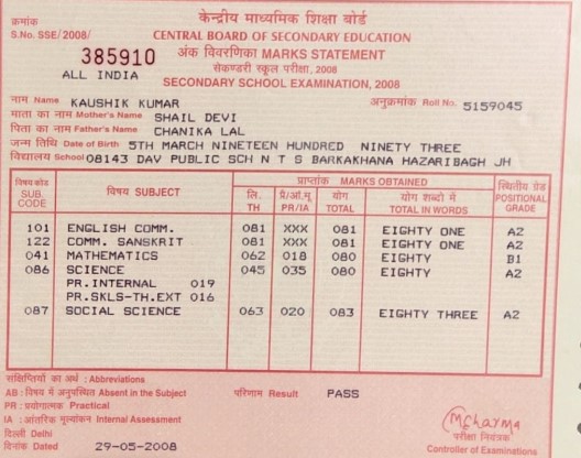 | Exam | Full Marks | Pass Marks | Marks Obtained |