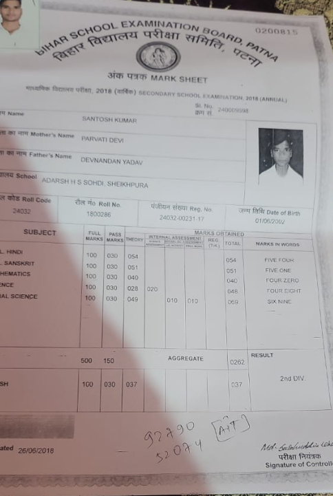| Exam | Full Marks | Pass Marks | Marks Obtained |