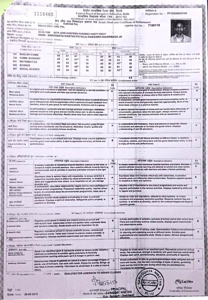 | Exam | Full Marks | Pass Marks | Marks Obtained |