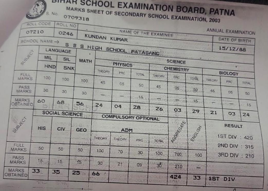 | Exam | Full Marks | Pass Marks | Marks Obtained |
