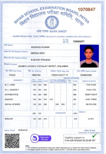 | Exam | Full Marks | Pass Marks | Marks Obtained |