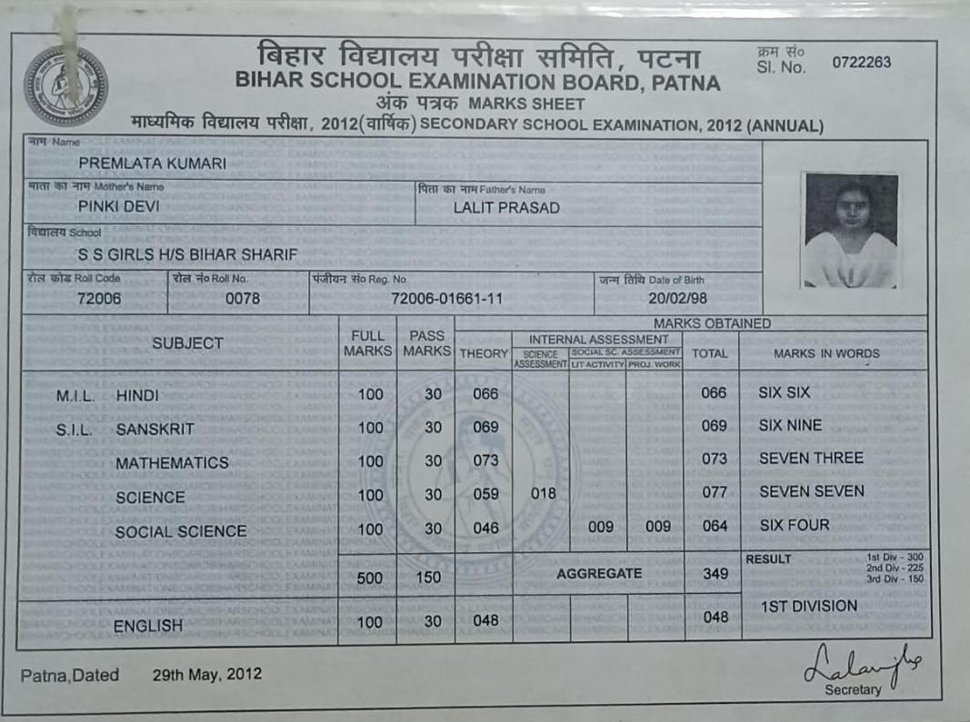 | Exam | Full Marks | Pass Marks | Marks Obtained |