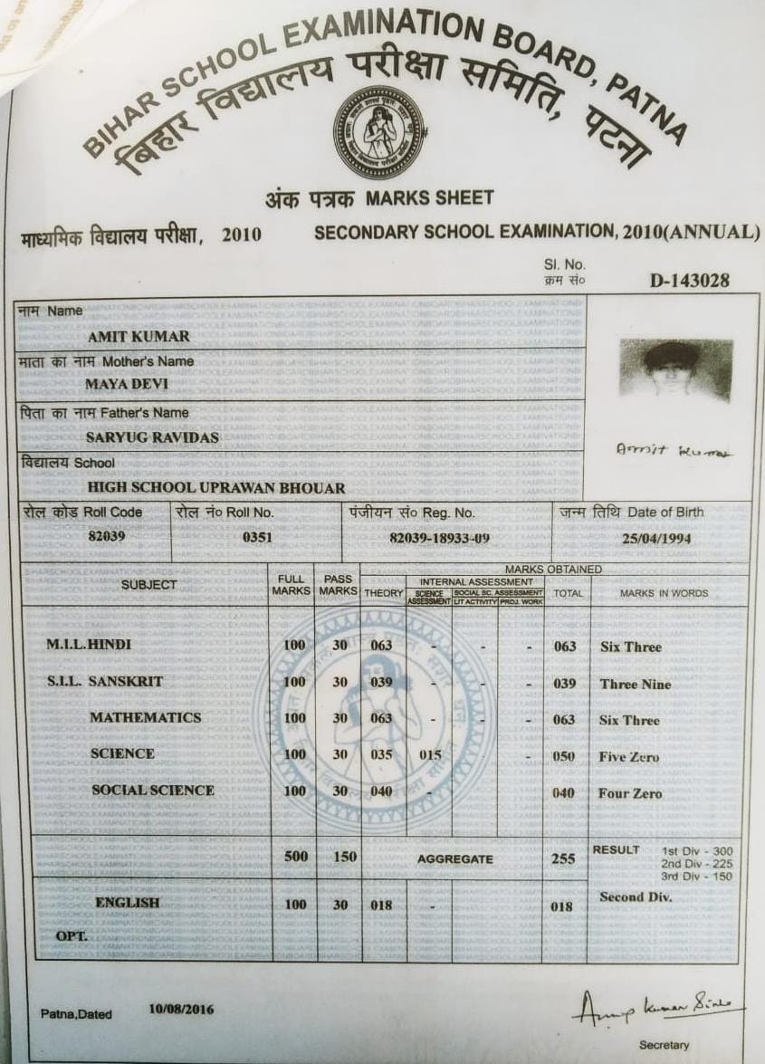 | Exam | Full Marks | Pass Marks | Marks Obtained |