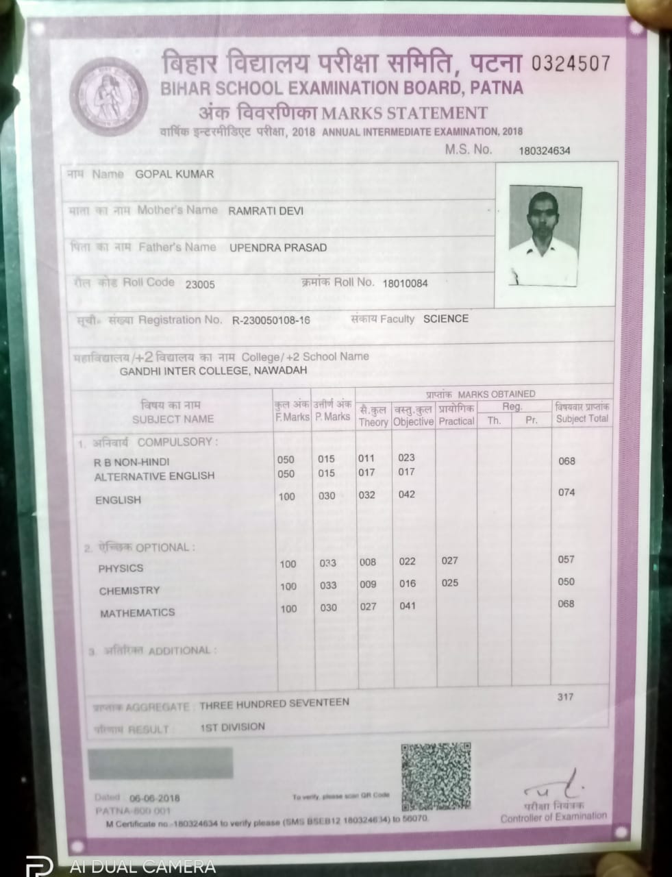 | Exam | Full Marks | Pass Marks | Marks Obtained |