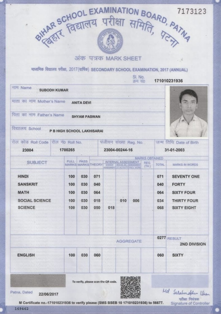 | Exam | Full Marks | Pass Marks | Marks Obtained |