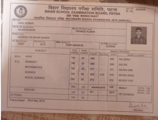 | Exam | Full Marks | Pass Marks | Marks Obtained |