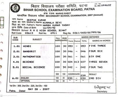 | Exam | Full Marks | Pass Marks | Marks Obtained |