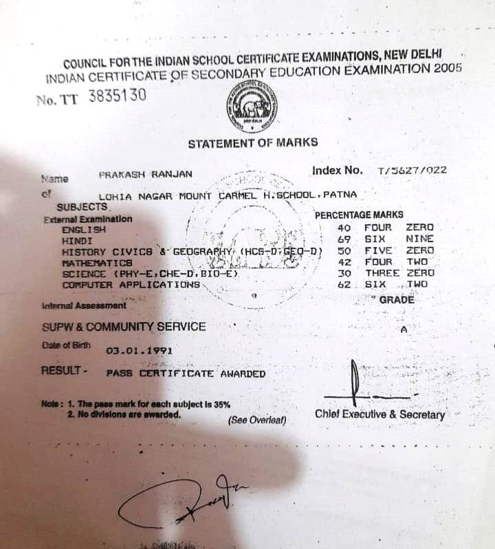 | Exam | Full Marks | Pass Marks | Marks Obtained |