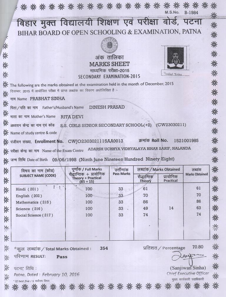 | Exam | Full Marks | Pass Marks | Marks Obtained |