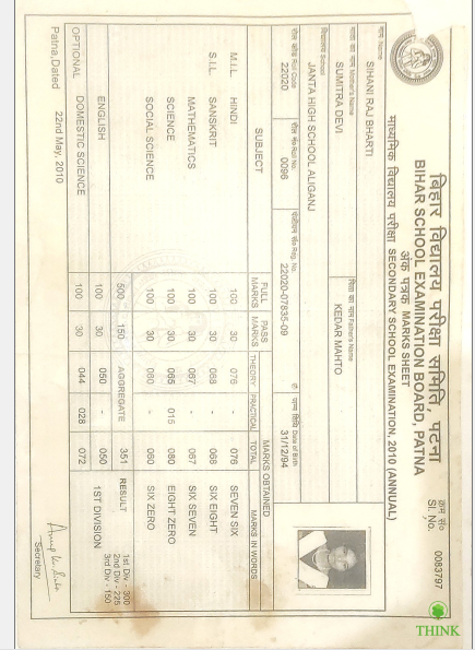 | Exam | Full Marks | Pass Marks | Marks Obtained |