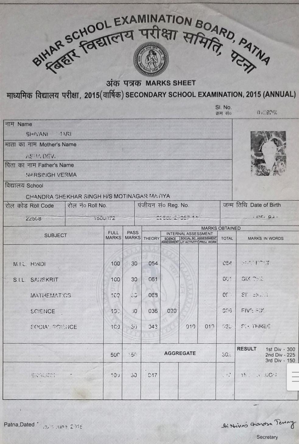 | Exam | Full Marks | Pass Marks | Marks Obtained |