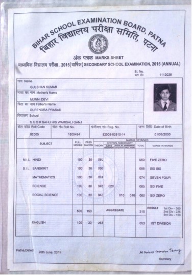 | Exam | Full Marks | Pass Marks | Marks Obtained |