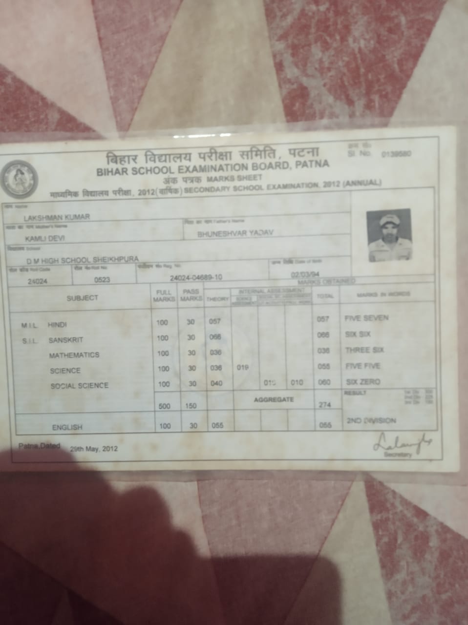 | Exam | Full Marks | Pass Marks | Marks Obtained |