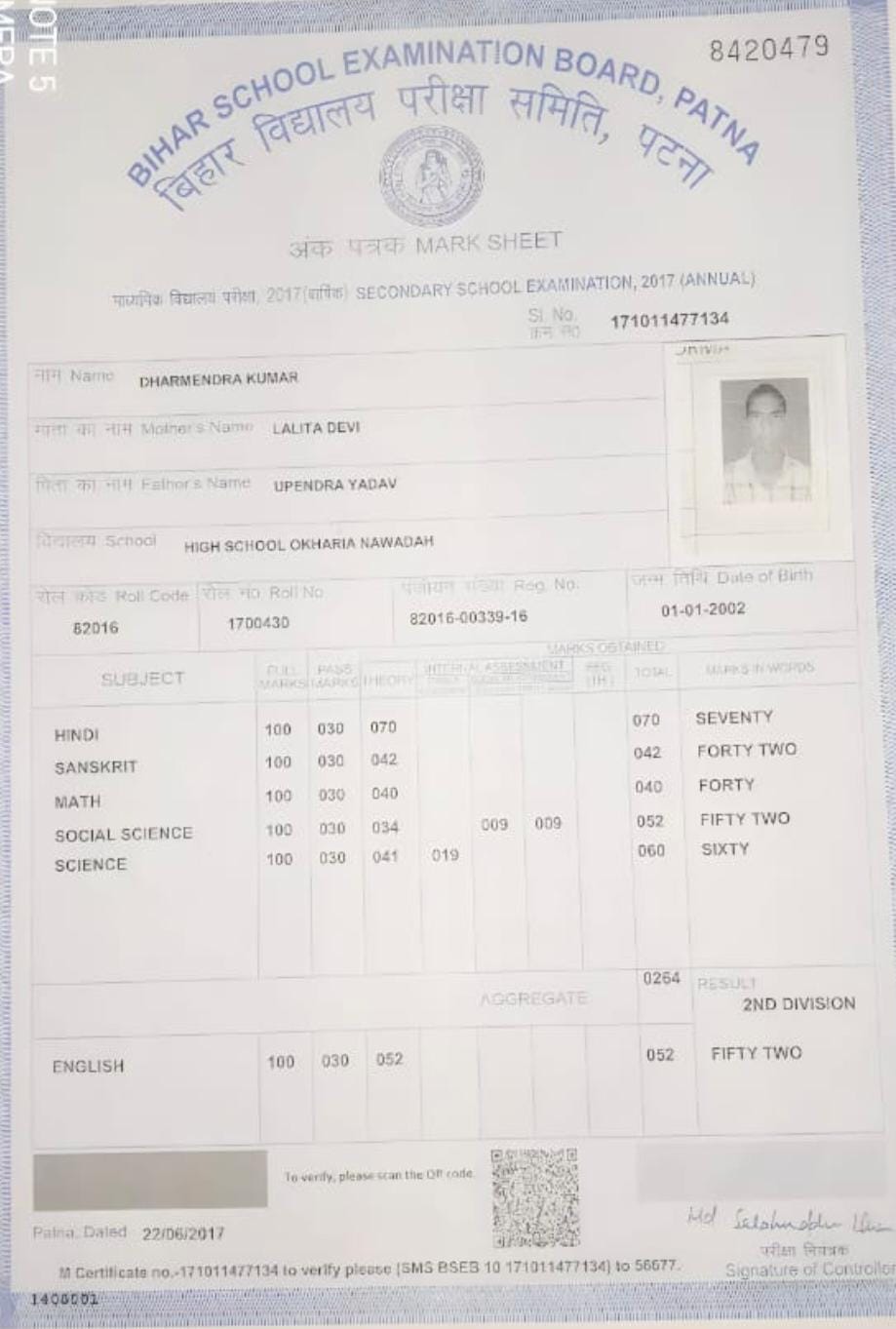 | : | Matric | |
