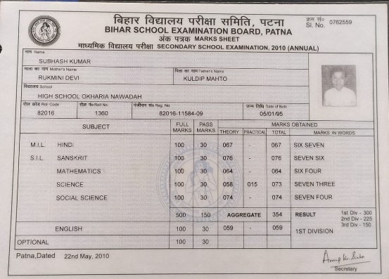 | Exam | Full Marks | Pass Marks | Marks Obtained |