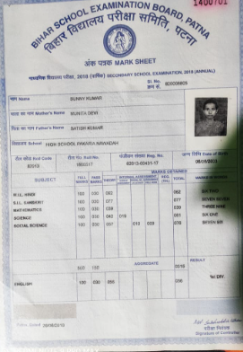 | Exam | Full Marks | Pass Marks | Marks Obtained |