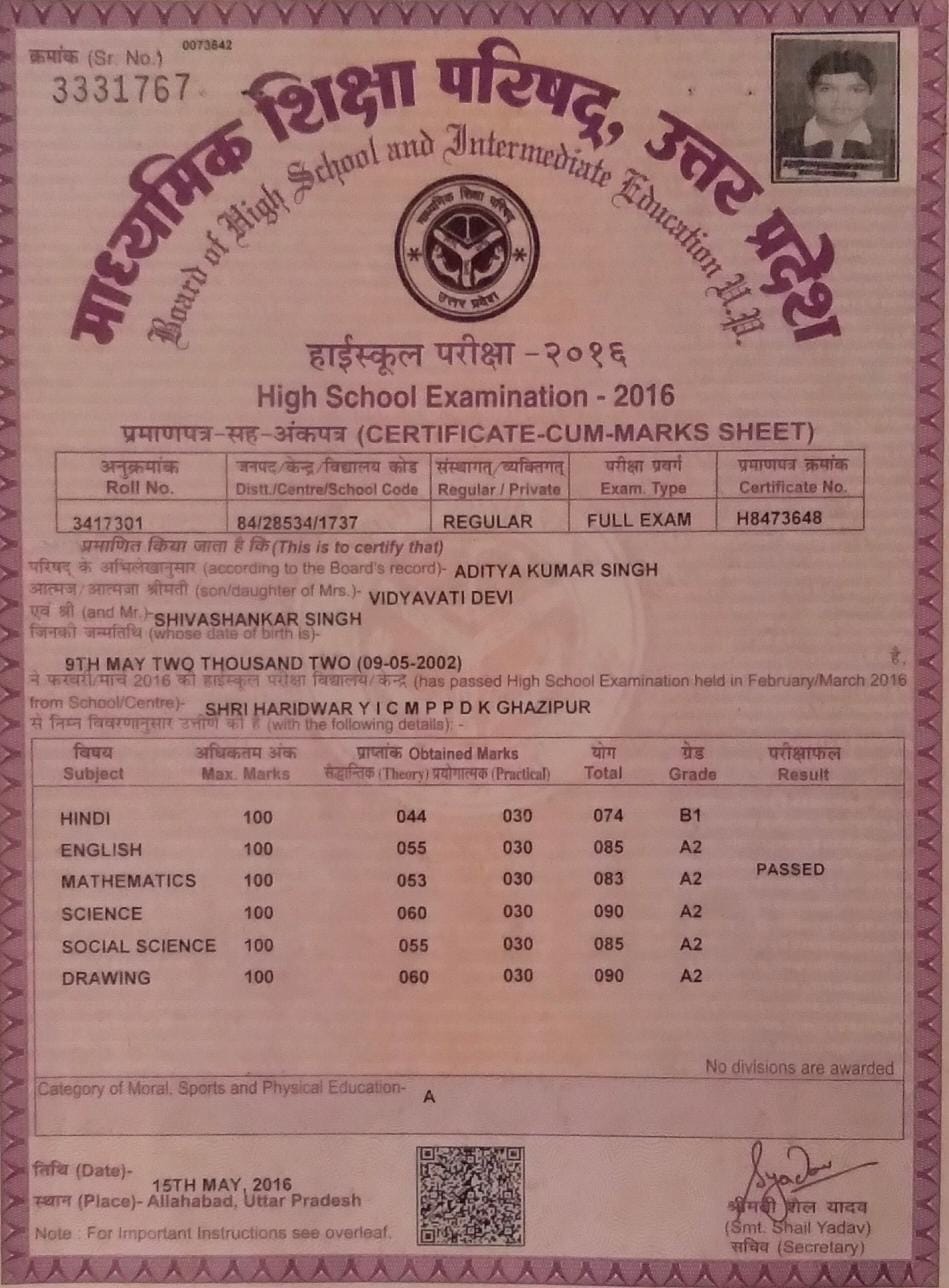 | Exam | Full Marks | Pass Marks | Marks Obtained |