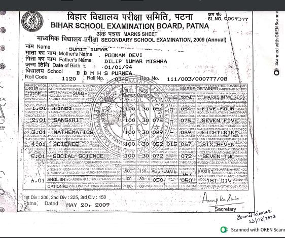 | Exam | Full Marks | Pass Marks | Marks Obtained |
