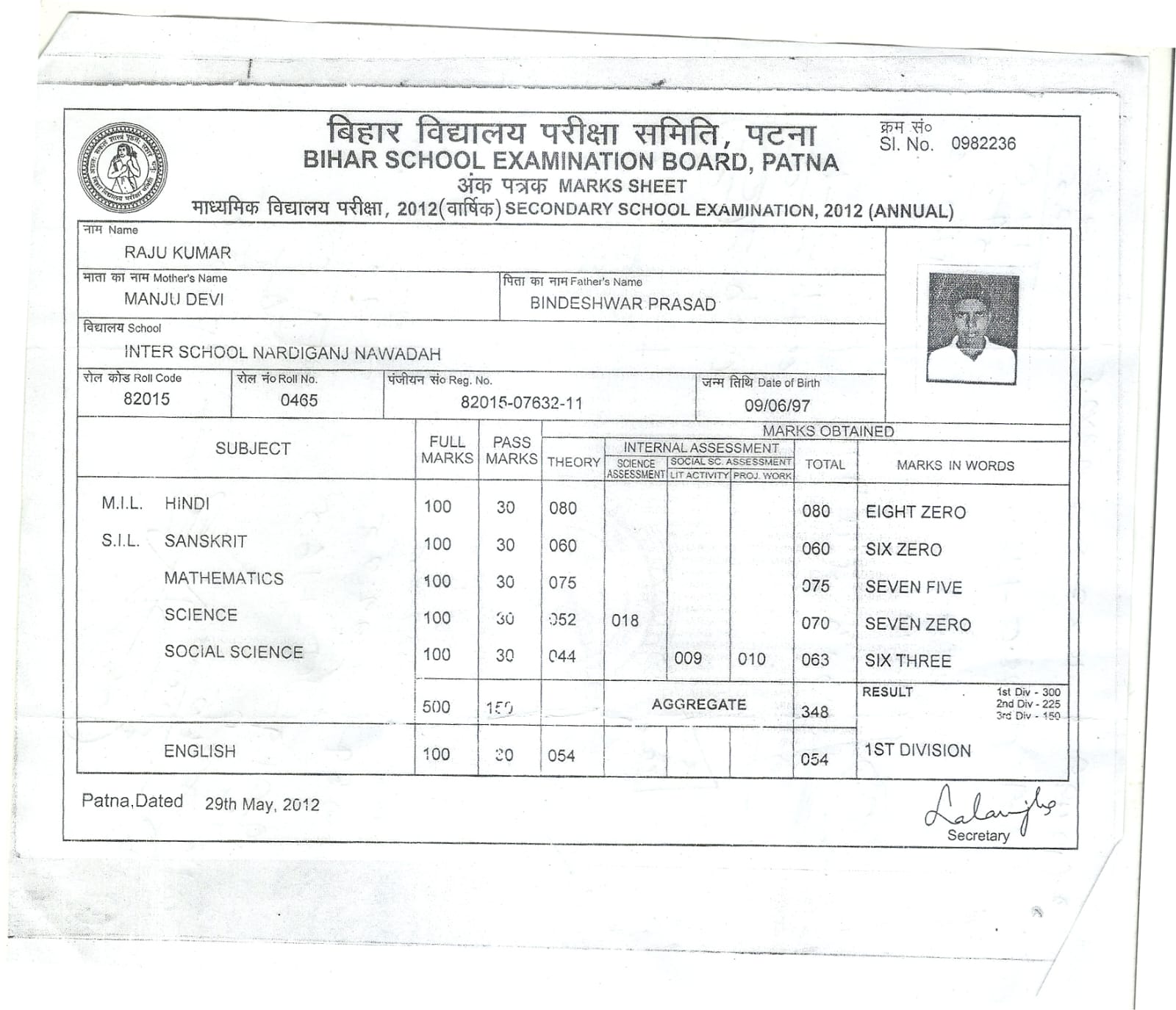 | Exam | Full Marks | Pass Marks | Marks Obtained |
