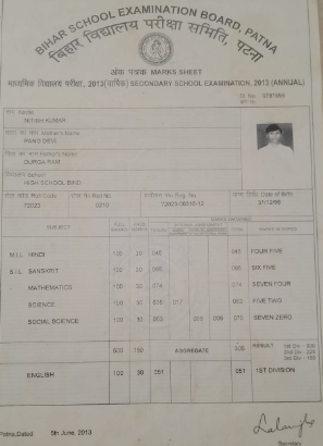 | Exam | Full Marks | Pass Marks | Marks Obtained |