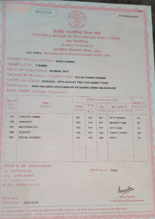 | Exam | Full Marks | Pass Marks | Marks Obtained |