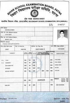 | Exam | Full Marks | Pass Marks | Marks Obtained |