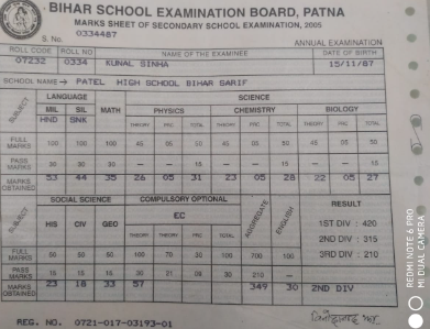 | Exam | Full Marks | Pass Marks | Marks Obtained |