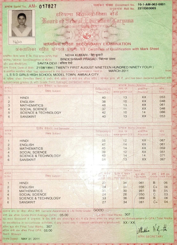 | Exam | Full Marks | Pass Marks | Marks Obtained |