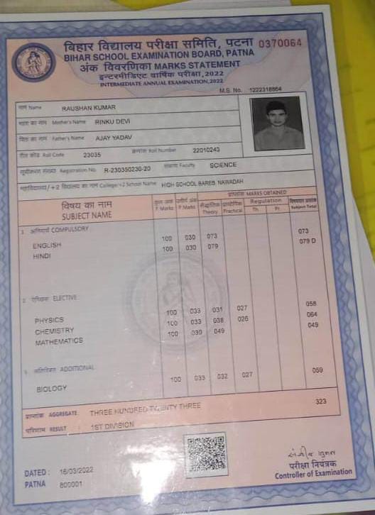 | Exam | Full Marks | Pass Marks | Marks Obtained |