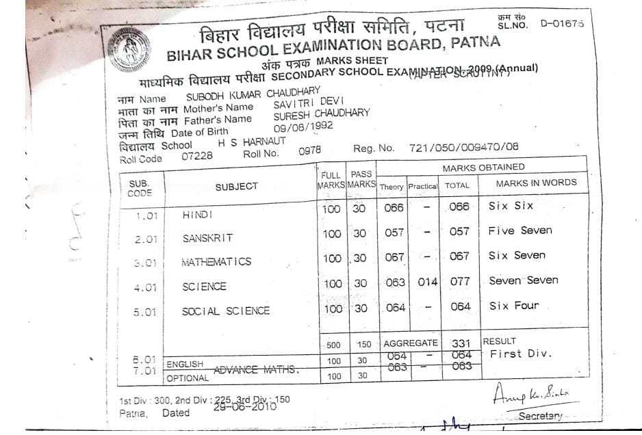 | Exam | Full Marks | Pass Marks | Marks Obtained |