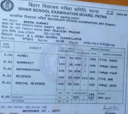 | Exam | Full Marks | Pass Marks | Marks Obtained |