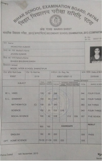 | Exam | Full Marks | Pass Marks | Marks Obtained |