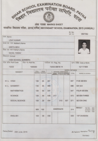 | Exam | Full Marks | Pass Marks | Marks Obtained |