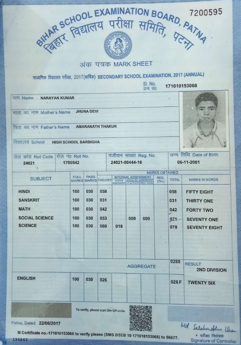 | Exam | Full Marks | Pass Marks | Marks Obtained |