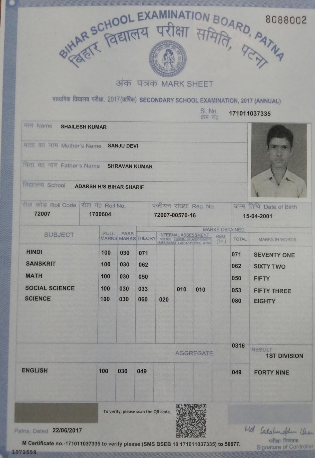 | Exam | Full Marks | Pass Marks | Marks Obtained |