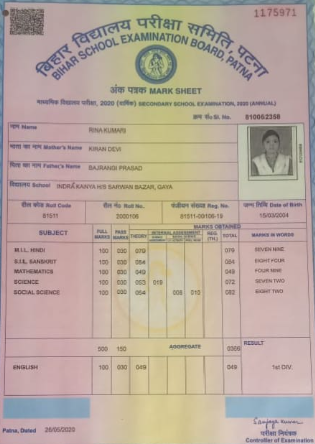 | Exam | Full Marks | Pass Marks | Marks Obtained |
