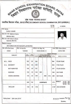 | Exam | Full Marks | Pass Marks | Marks Obtained |