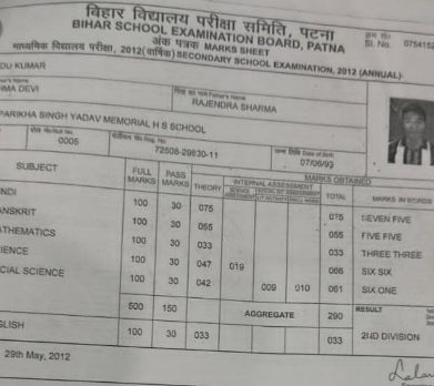 | Exam | Full Marks | Pass Marks | Marks Obtained |