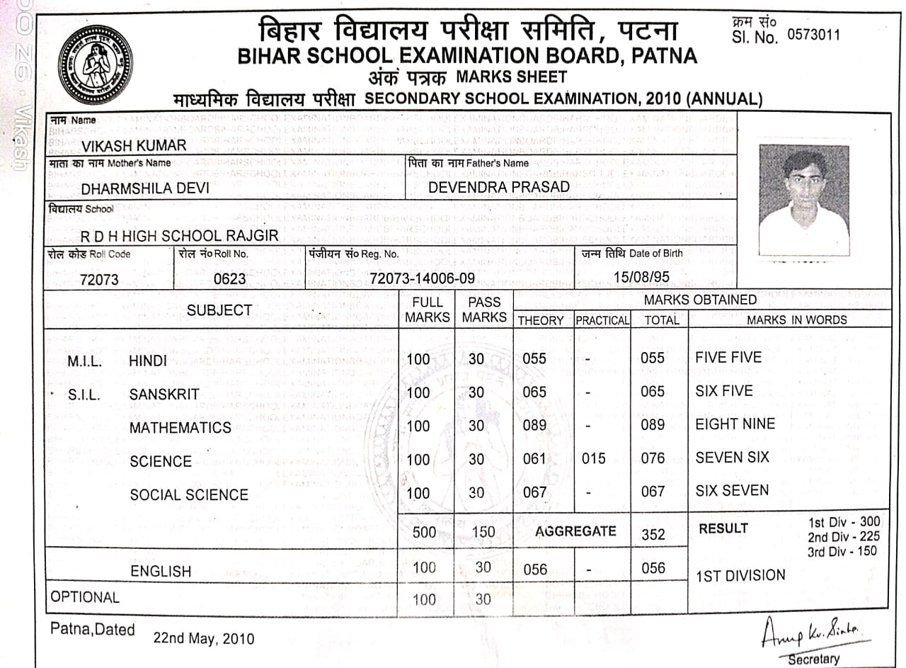 | Exam | Full Marks | Pass Marks | Marks Obtained |