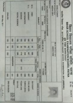 | Exam | Full Marks | Pass Marks | Marks Obtained |
