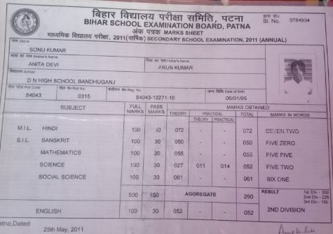 | Exam | Full Marks | Pass Marks | Marks Obtained |