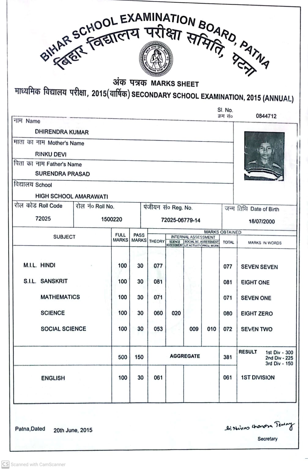 | Exam | Full Marks | Pass Marks | Marks Obtained |