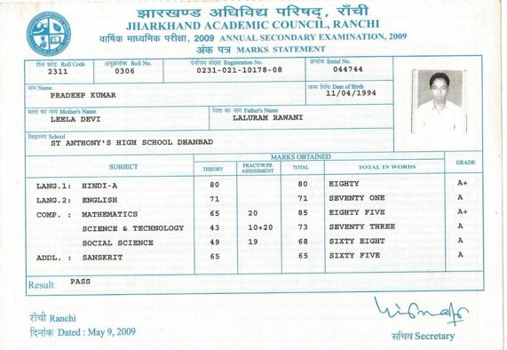 | Exam | Full Marks | Pass Marks | Marks Obtained |