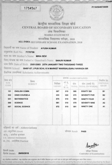 | Exam | Full Marks | Pass Marks | Marks Obtained |