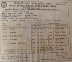 | Exam | Full Marks | Pass Marks | Marks Obtained |