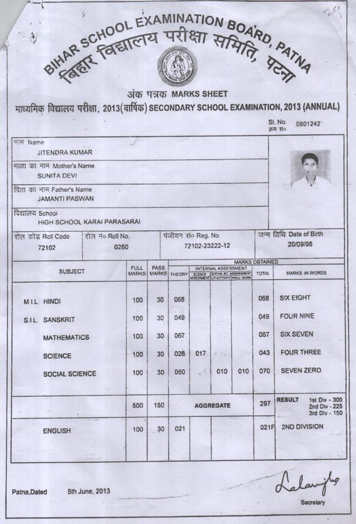 | Exam | Full Marks | Pass Marks | Marks Obtained |