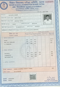 | Exam | Full Marks | Pass Marks | Marks Obtained |