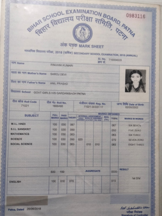 | Exam | Full Marks | Pass Marks | Marks Obtained |