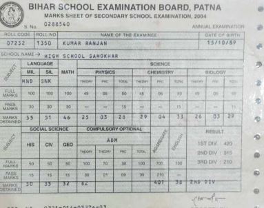 | Exam | Full Marks | Pass Marks | Marks Obtained |