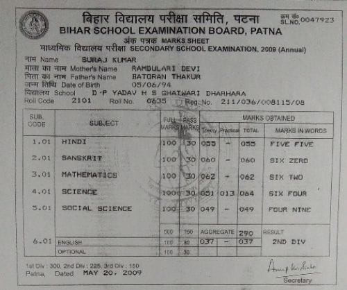 | Exam | Full Marks | Pass Marks | Marks Obtained |